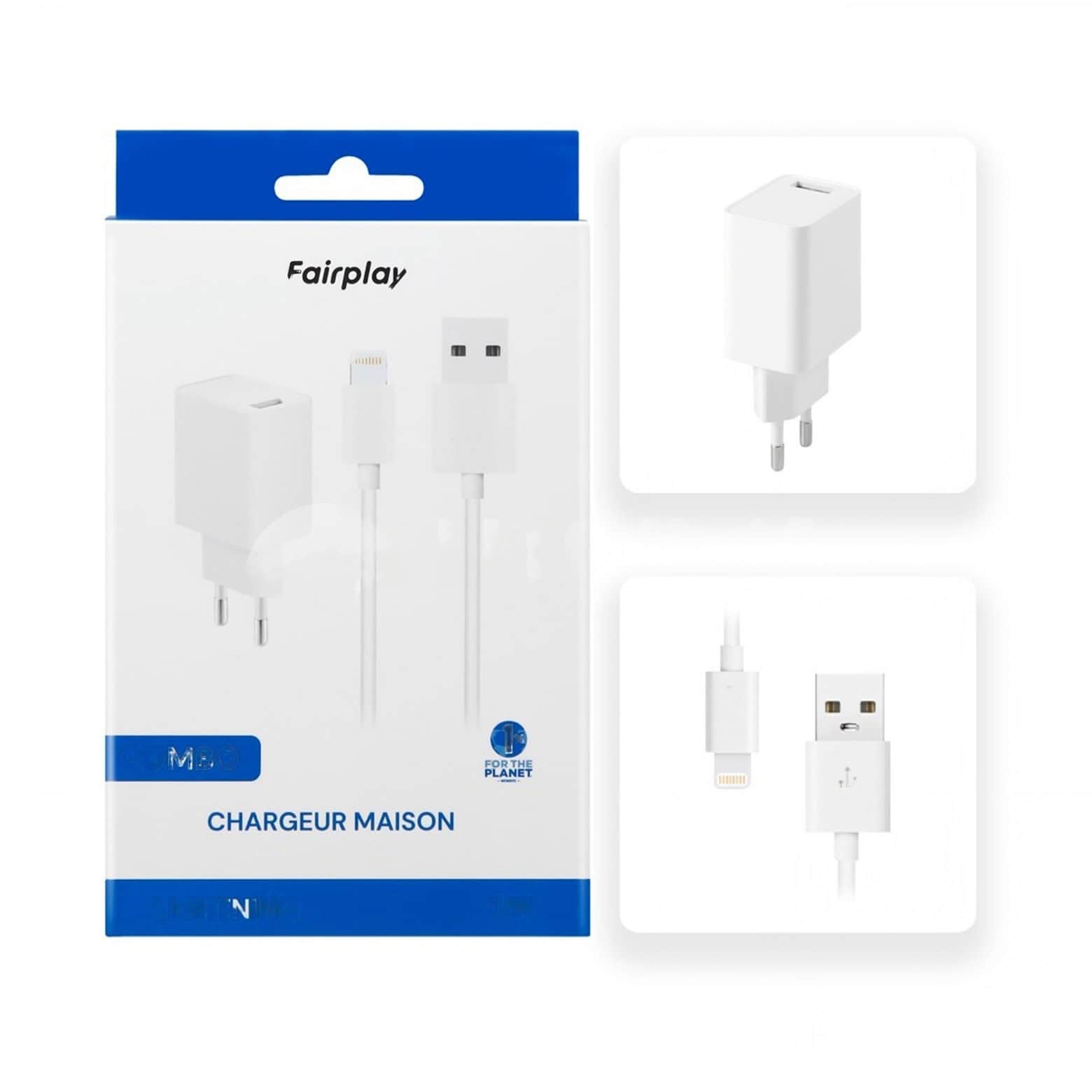FAIRPLAY COMBO Chargeur (12W) + Câble Lightning (1m) (Blanc)